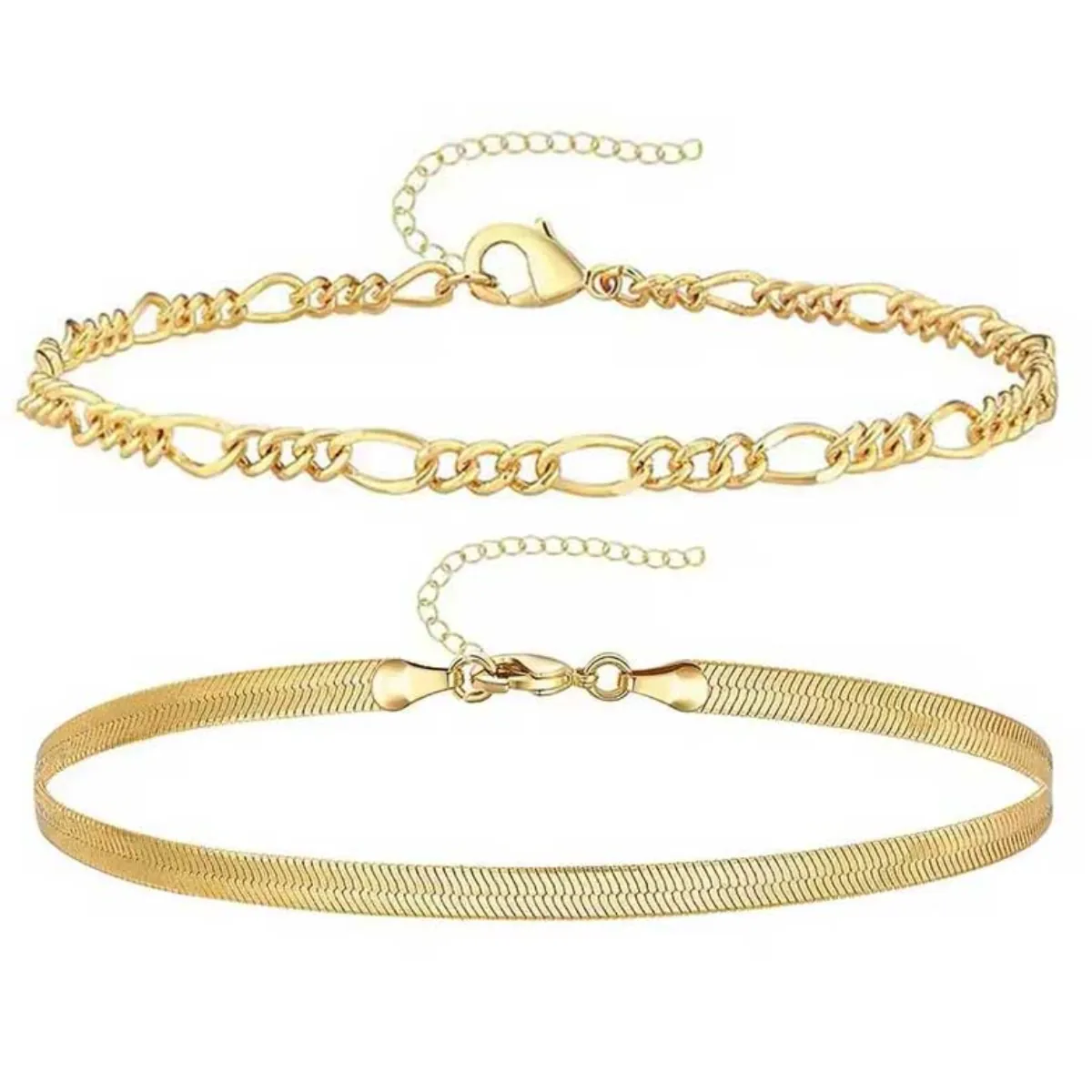 Γυναικείες αλυσίδες ποδιού SET 2 ΤΕΜ. Επιχρυσωμένες από Ανοξείδωτο Ατσάλι. bode 03432G