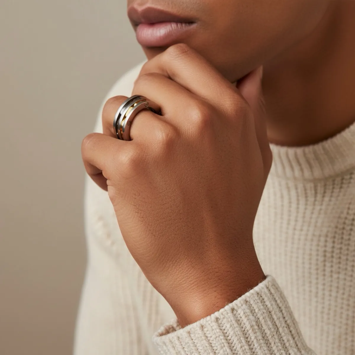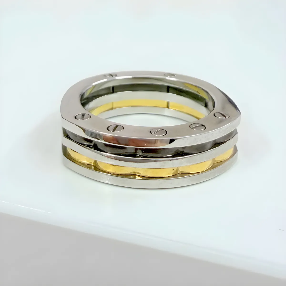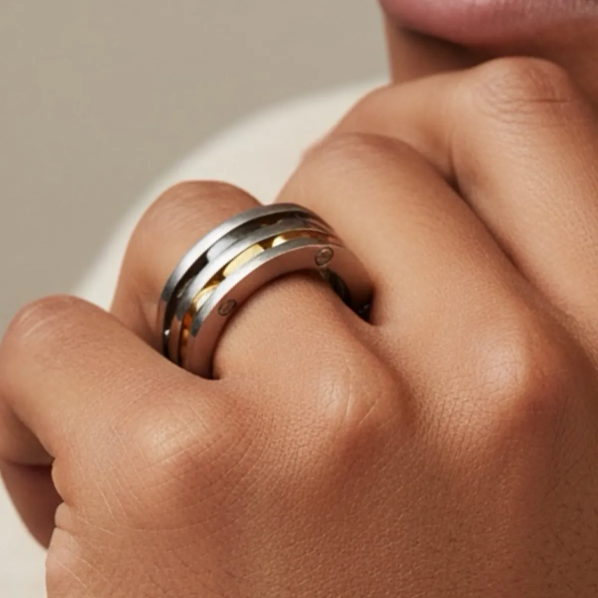 Aνδρικό δαχτυλίδι με ιδιαίτερο σχέδιο από ανοξείδωτο ατσάλι 316L σε ασημί και χρυσό χρώμα. Visetti RG010X