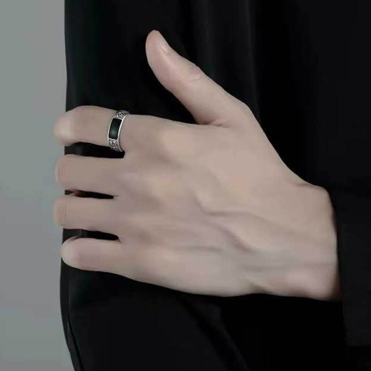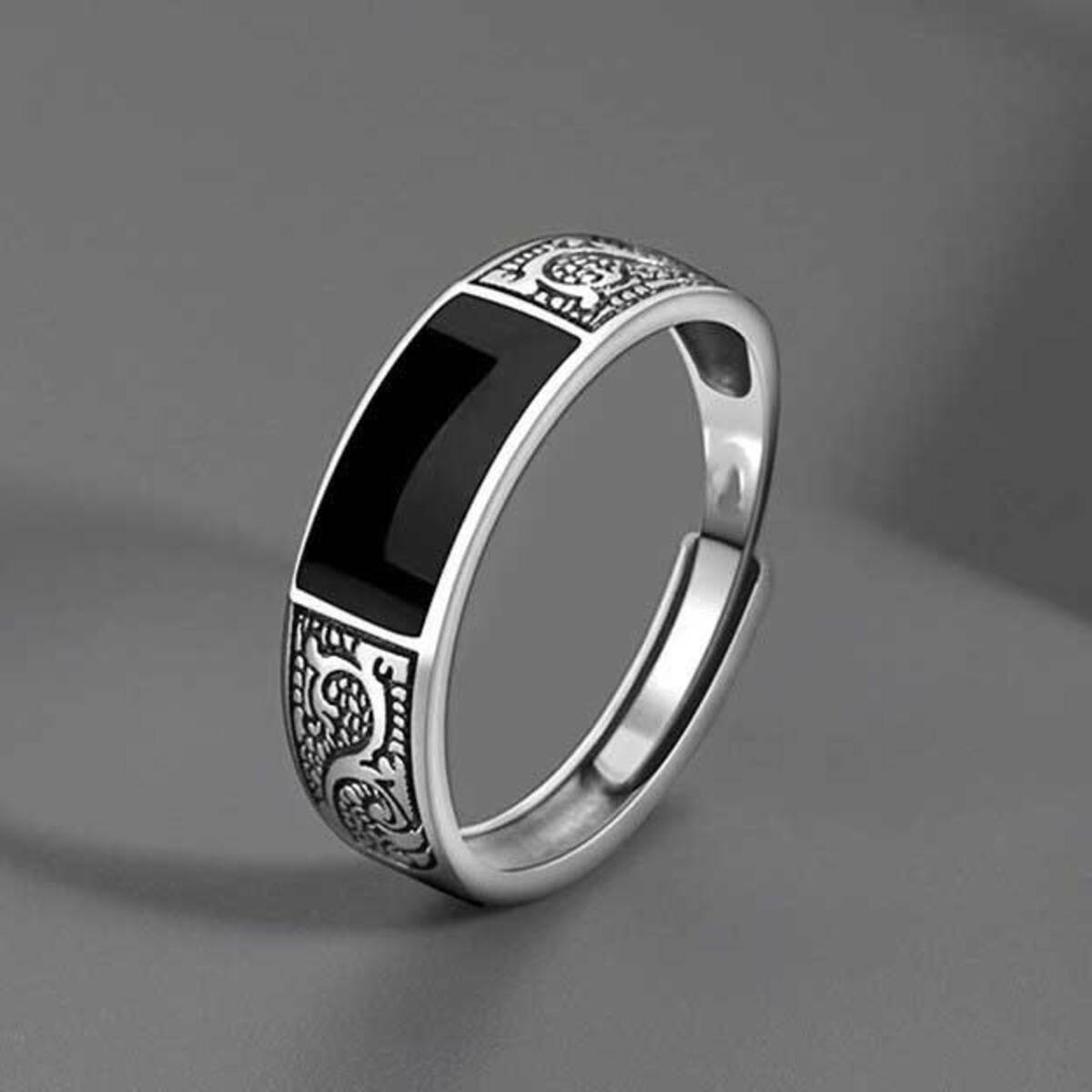 Aνδρικό δαχτυλίδι με αυξομείωση από ασήμι 925 με μαύρη πέτρα από αχάτη. bode 03802