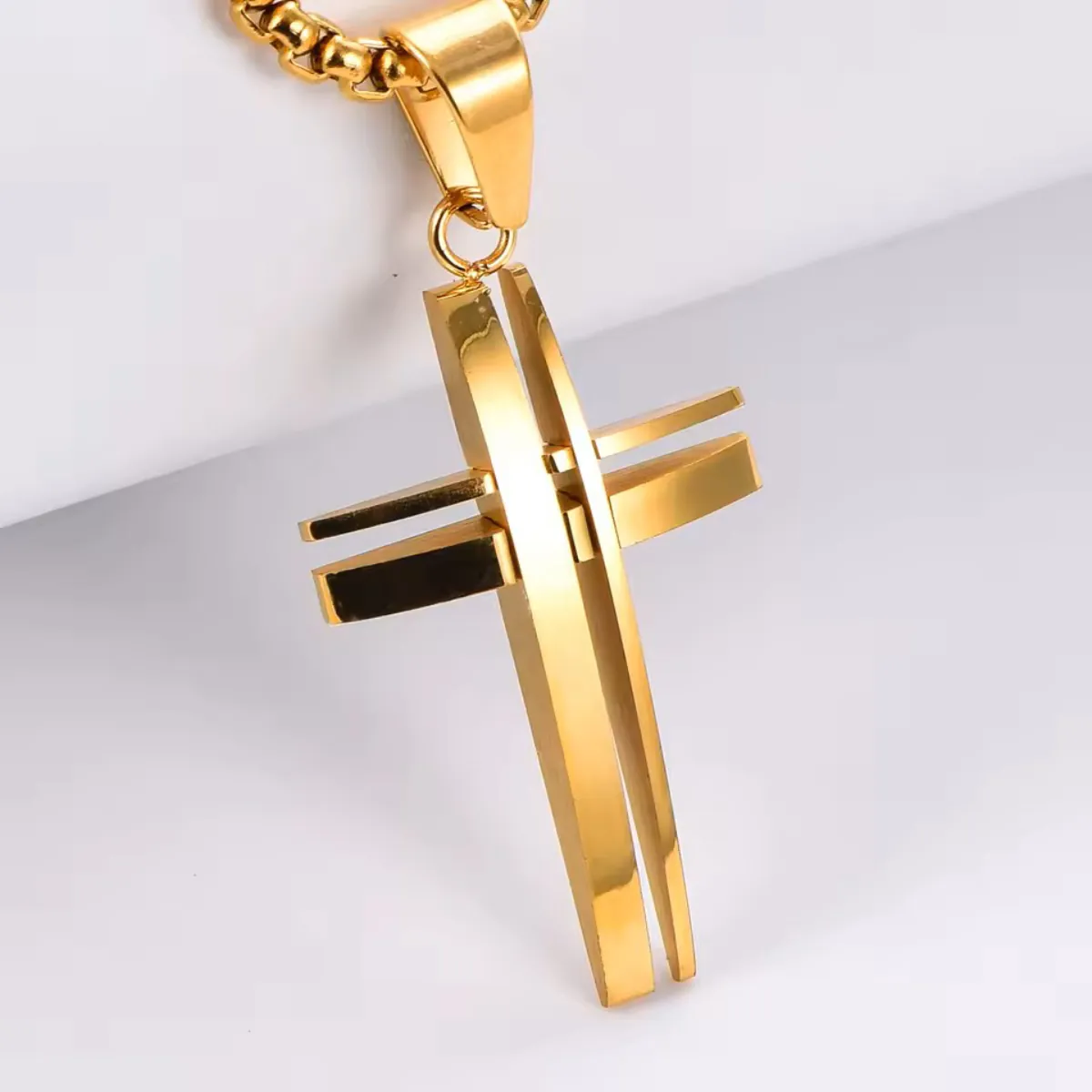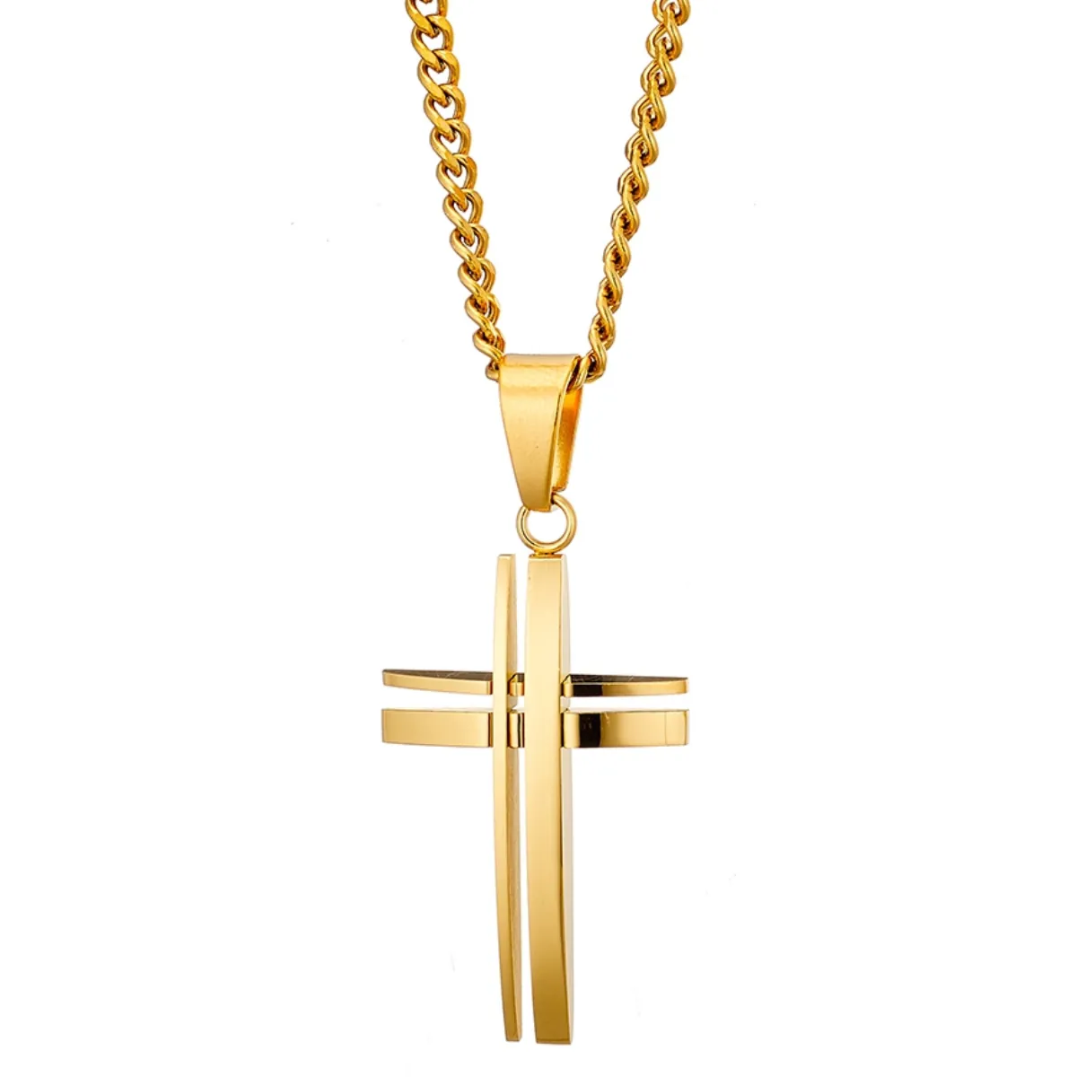 Ανδρικός σταυρός ατσάλι 316L σε χρυσό χρώμα και χρυσή αλυσίδα. Μάκρος αλυσίδας περίπου 55 cm. Art 01070G