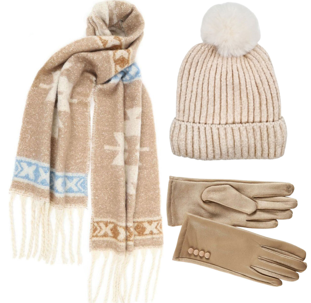 Set Γυναικείος Σκούφος Verde & Κασκόλ Doca & γάντια Verde one size σε μπεζ χρώμα