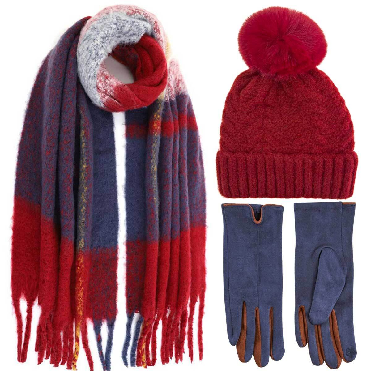 BODE Set Γυναικείος Σκούφος & Κασκόλ & γάντια one size 12-0641 μπλε/μπορντώ