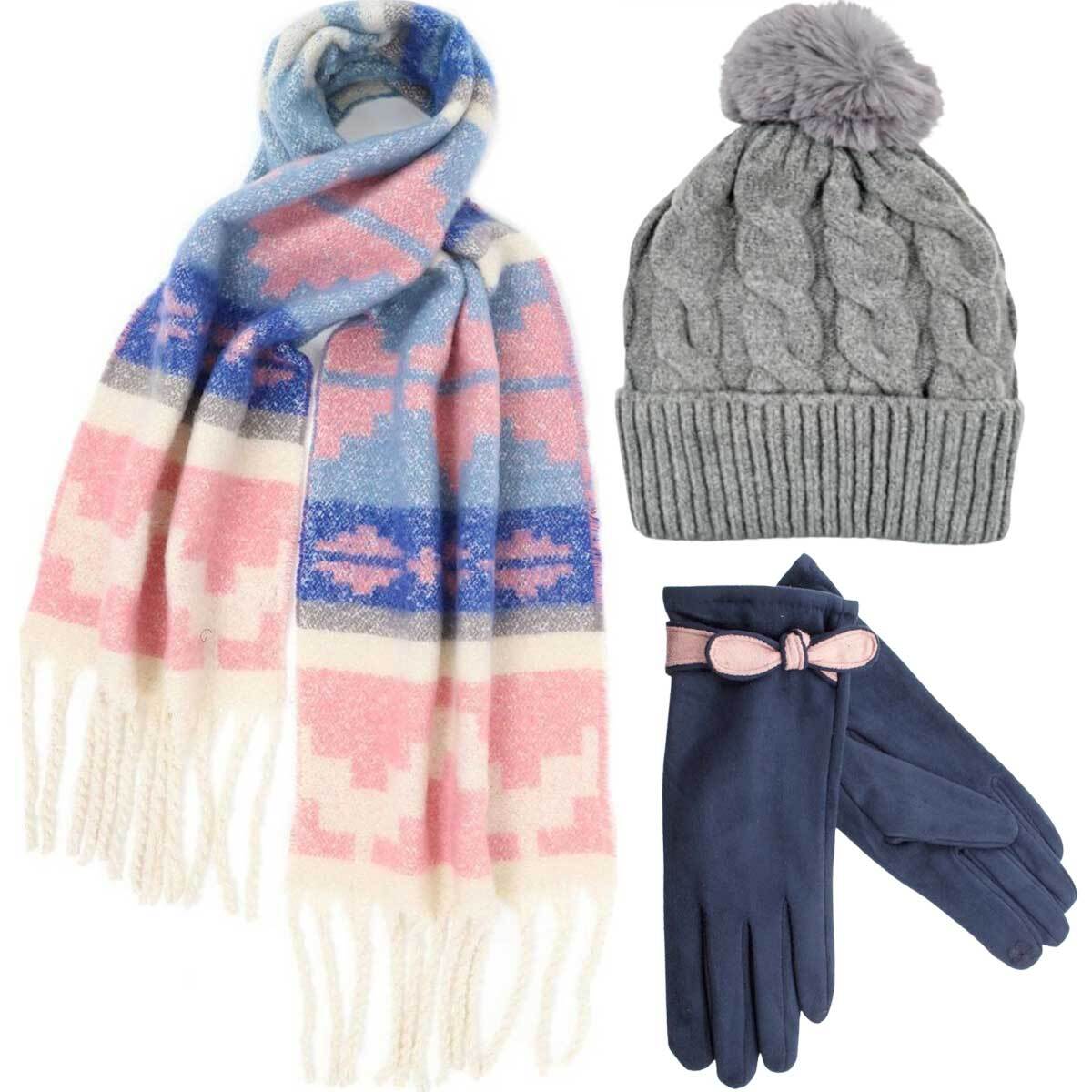 Set Γυναικείος Σκούφος Verde & Κασκόλ Doca & γάντια Verde one size σε ροζ/γκρι χρώμα