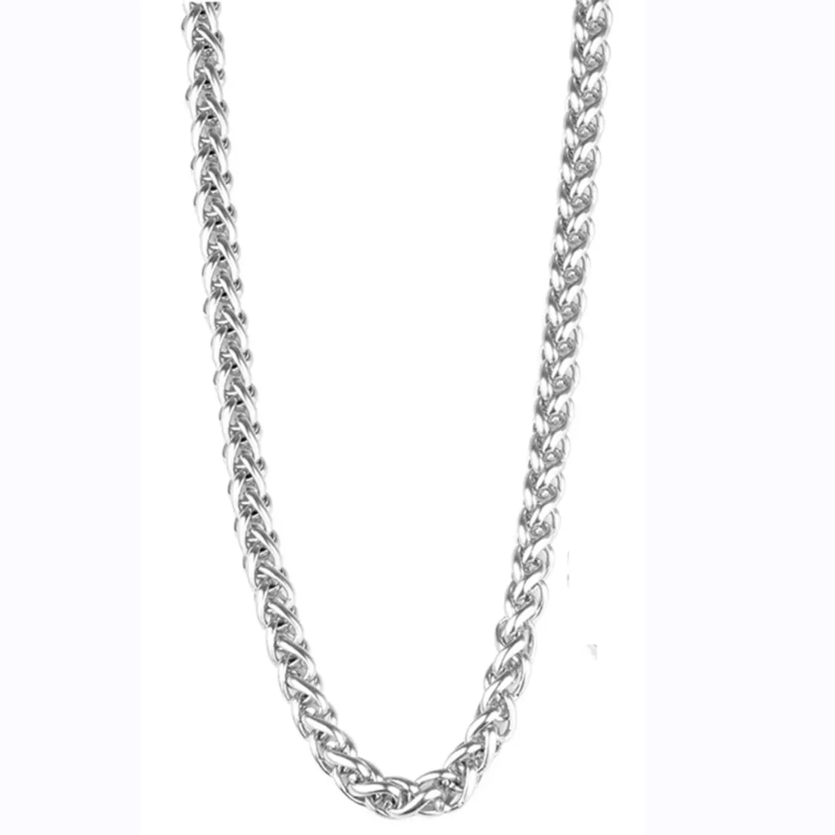Men's Neck chain with a special shape, thick, 7mm wide, 316L steel in silver color.
